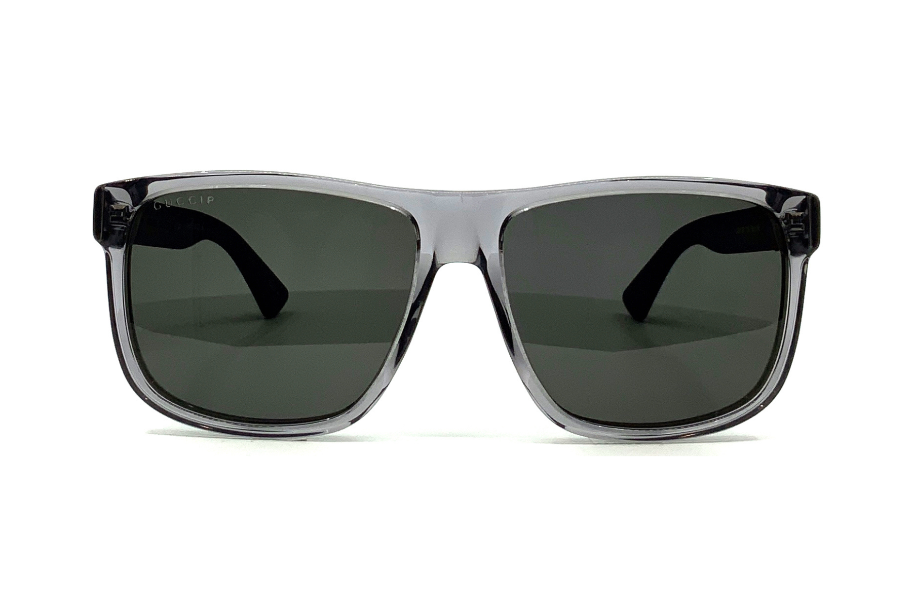 Acetate front with rubber co-injected temple, characterized by the web grosgrain insert that takes inspiration from Gucci man accessories.